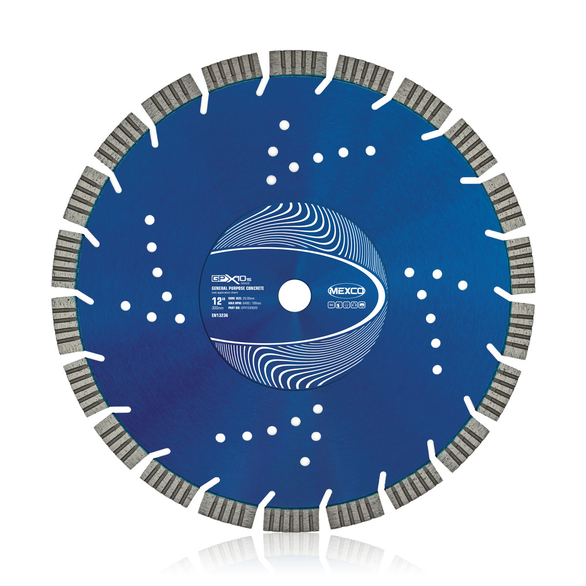 The 300MM CONCRETE X10 GRADE diamond cutting blade features a 15mm segment height and is specifically designed for general purpose concrete cutting applications. This professional-grade blade offers excellent cutting performance and durability for demanding concrete cutting tasks, with diamond segments providing superior cutting efficiency and extended blade life.