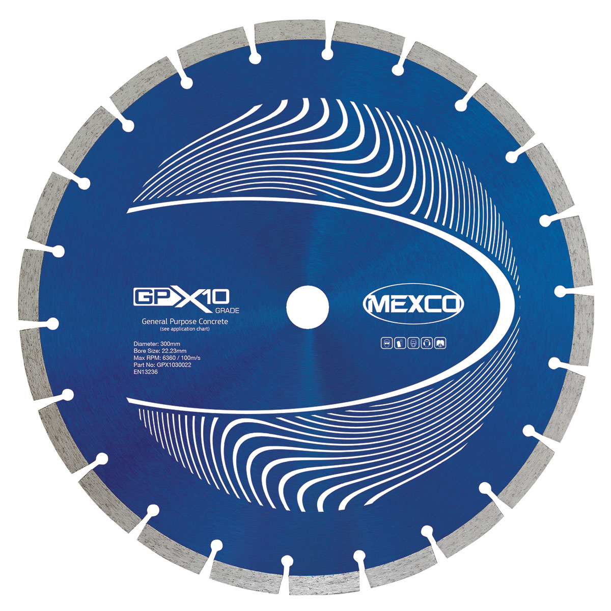 The 300MM CONCRETE X10 GRADE 22.23MM BORE is a high-performance diamond cutting blade designed specifically for general purpose concrete cutting applications. This professional-grade blade features a segmented rim design for efficient cutting and debris removal, with a 22.23mm bore size for compatibility with standard angle grinders and concrete saws. The X10 grade diamond segments provide excellent cutting performance and durability for demanding concrete cutting tasks, making it ideal for construction professionals and contractors.