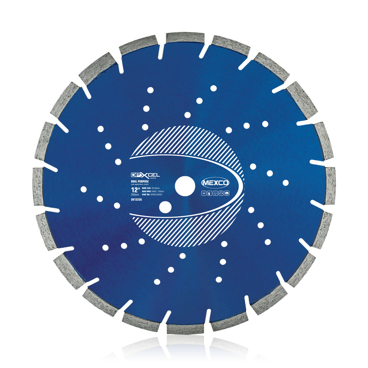 The MEXCO 300MM DUAL PURPOSE ABRASIVE XCEL GRADE is a high-performance diamond cutting blade designed for versatile cutting applications. This professional-grade blade features a robust steel construction with a durable blue painted finish and diamond segments for superior cutting performance. The blade’s dual-purpose design makes it suitable for both wet and dry cutting of various abrasive materials, providing excellent value and reliability for demanding construction and masonry applications.