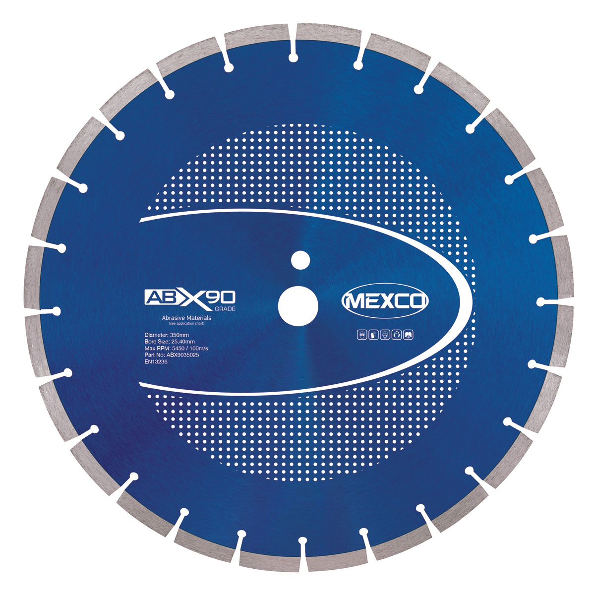 The 350MM ABRASIVE MATERIALS X90 GRADE diamond cutting disc is designed for cutting abrasive materials with professional precision. This high-performance disc features X90 grade diamond segments for superior cutting efficiency and durability. With a 350mm diameter and 25.40mm bore, it’s suitable for use with angle grinders and cut-off saws operating at maximum speeds of 5450/100rpm. The disc meets EN13236 safety standards, ensuring reliable performance for demanding construction and masonry applications.