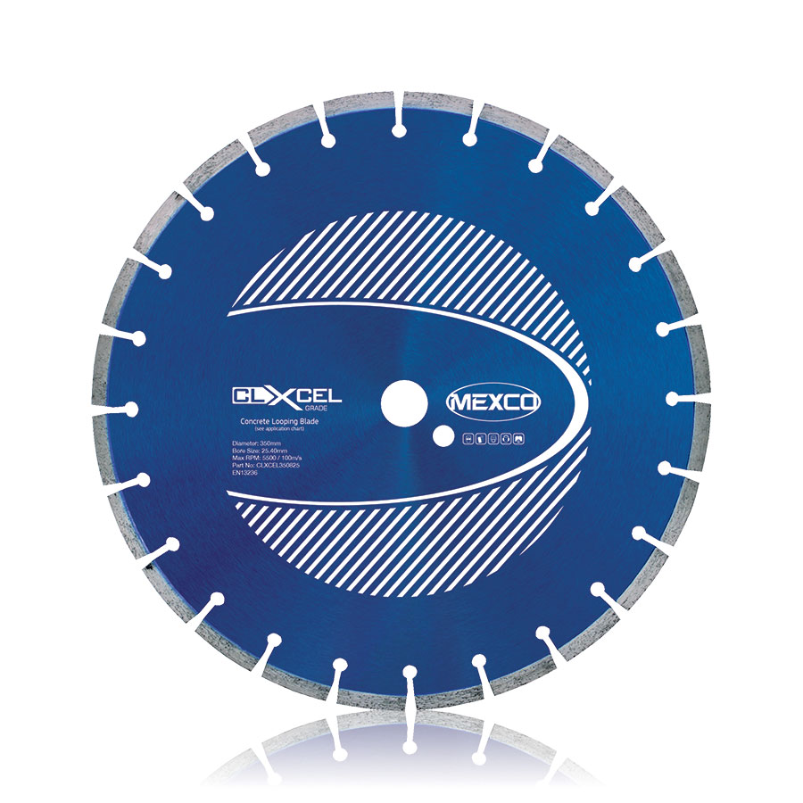 The 350MM CONCRETE LOOPING BLADE 10MM WIDTH XCEL GRADE is a professional diamond cutting blade designed for efficient concrete cutting applications. Featuring a 10mm segment width and 6mm depth cutting segments, this XCEL grade blade delivers superior performance and durability for demanding concrete looping operations. The 25mm bore ensures compatibility with standard concrete cutting equipment, making it an ideal choice for construction and renovation projects requiring precise concrete cutting.