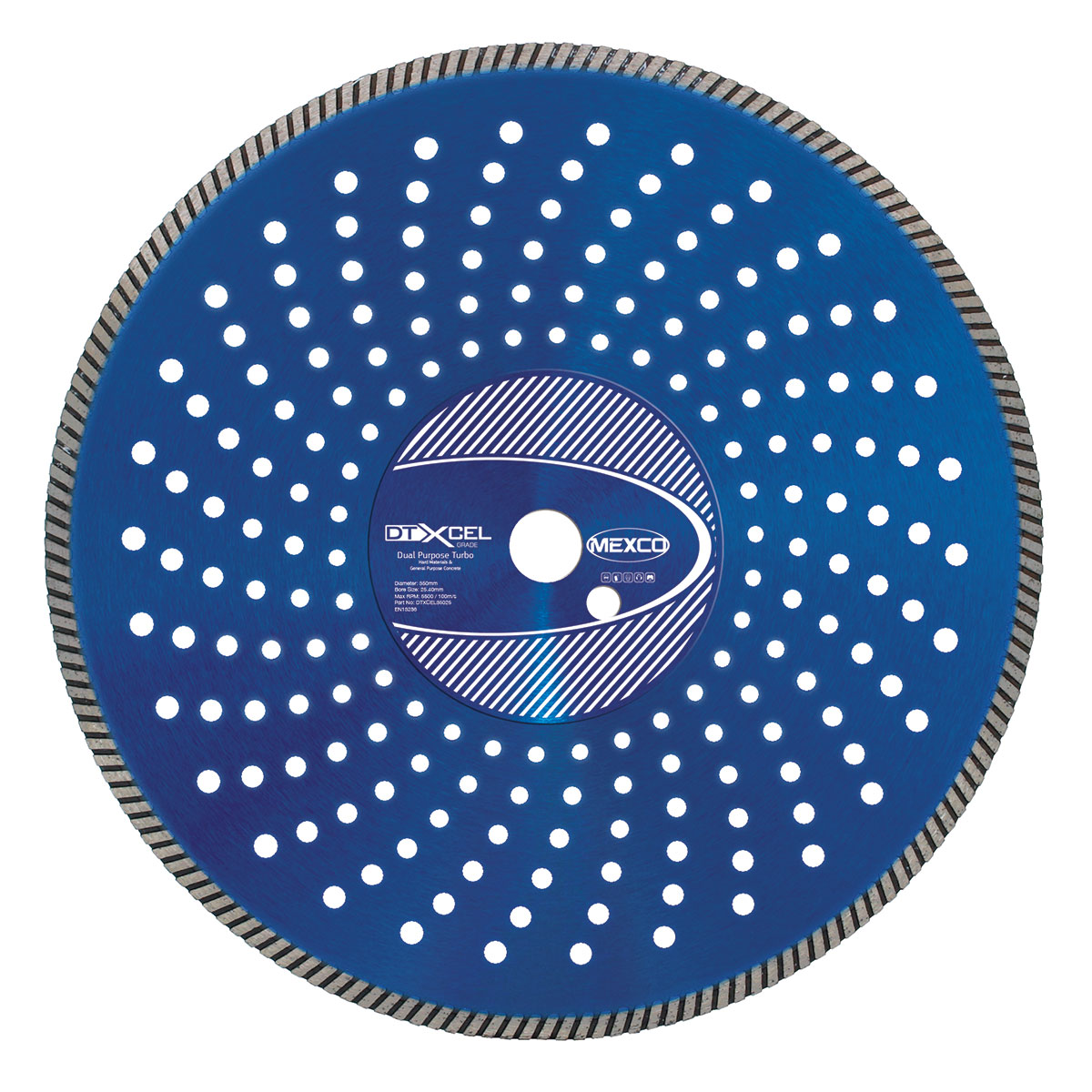The 350MM DIAMOND BLADE DUAL PURPOSE-TURBO DTXCEL is a high-performance diamond cutting blade designed for versatile dual-purpose applications. Featuring a turbo rim design with diamond segments and cooling holes for enhanced cutting efficiency and heat dissipation, this blade delivers superior performance across multiple materials. The robust steel construction and precision engineering ensure reliable cutting performance and extended blade life for professional applications.