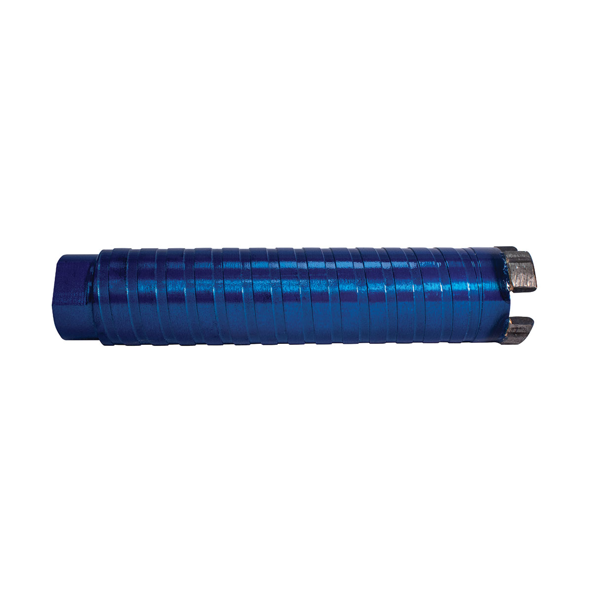The 38MM DRY CORE DRILL SOLID BARREL XCEL GRADE is a high-performance diamond-tipped dry core drill designed for precision drilling in masonry, concrete, and similar materials. Featuring a solid barrel construction for enhanced durability and efficient debris removal, this XCEL grade drill delivers professional results with its 38mm diameter and 165mm length. The blue painted steel construction provides corrosion resistance while the diamond cutting segments ensure clean, accurate holes without the need for water cooling.
