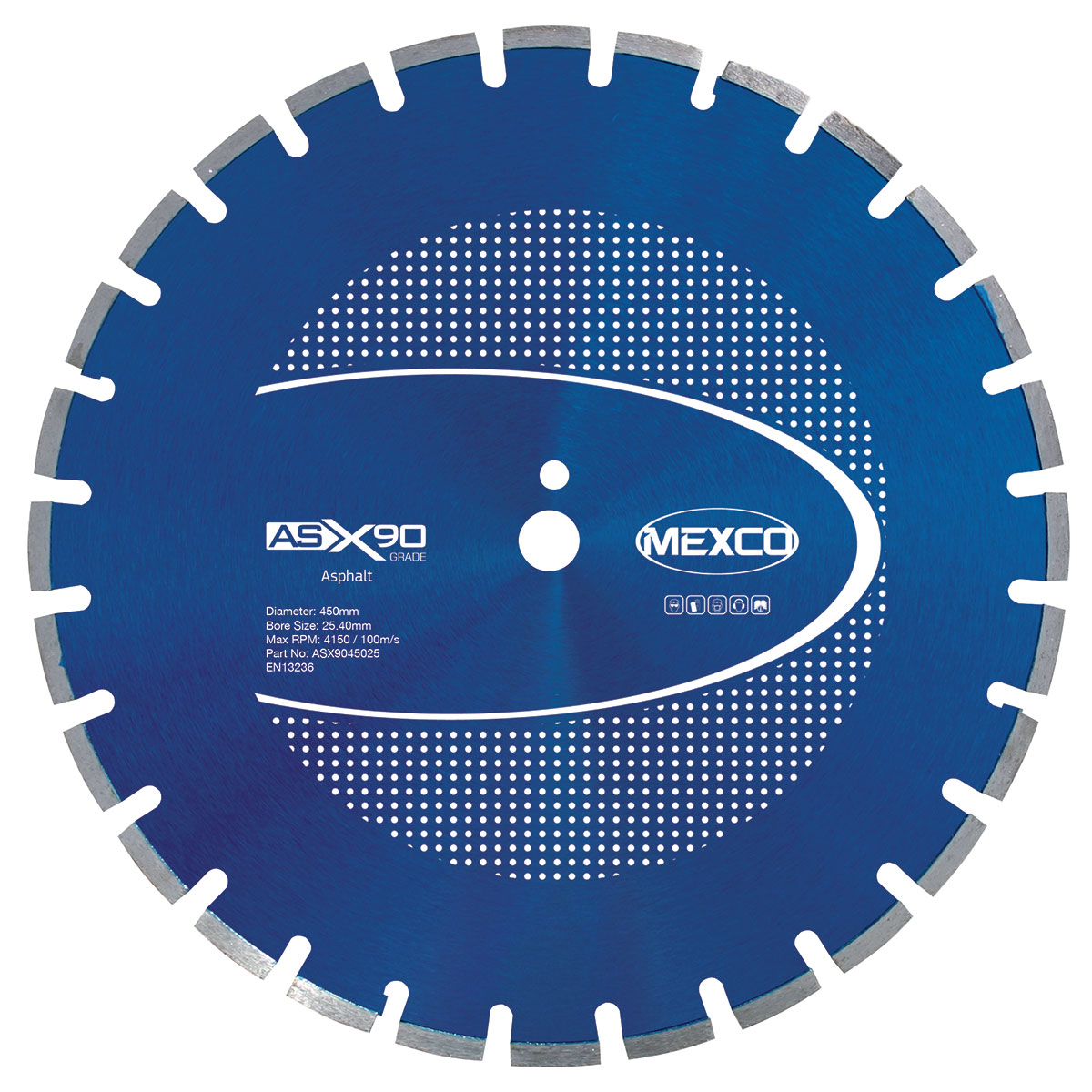 The 450MM ASPHALT X90 GRADE is a professional diamond cutting blade specifically designed for asphalt cutting applications. This high-performance blade features a 450mm diameter with segmented rim design for efficient cutting and debris removal. The X90 grade diamond segments provide excellent durability and cutting speed, making it ideal for road construction and maintenance work. With a maximum RPM of 4150/1000m/s, this blade delivers reliable performance for demanding asphalt cutting tasks.