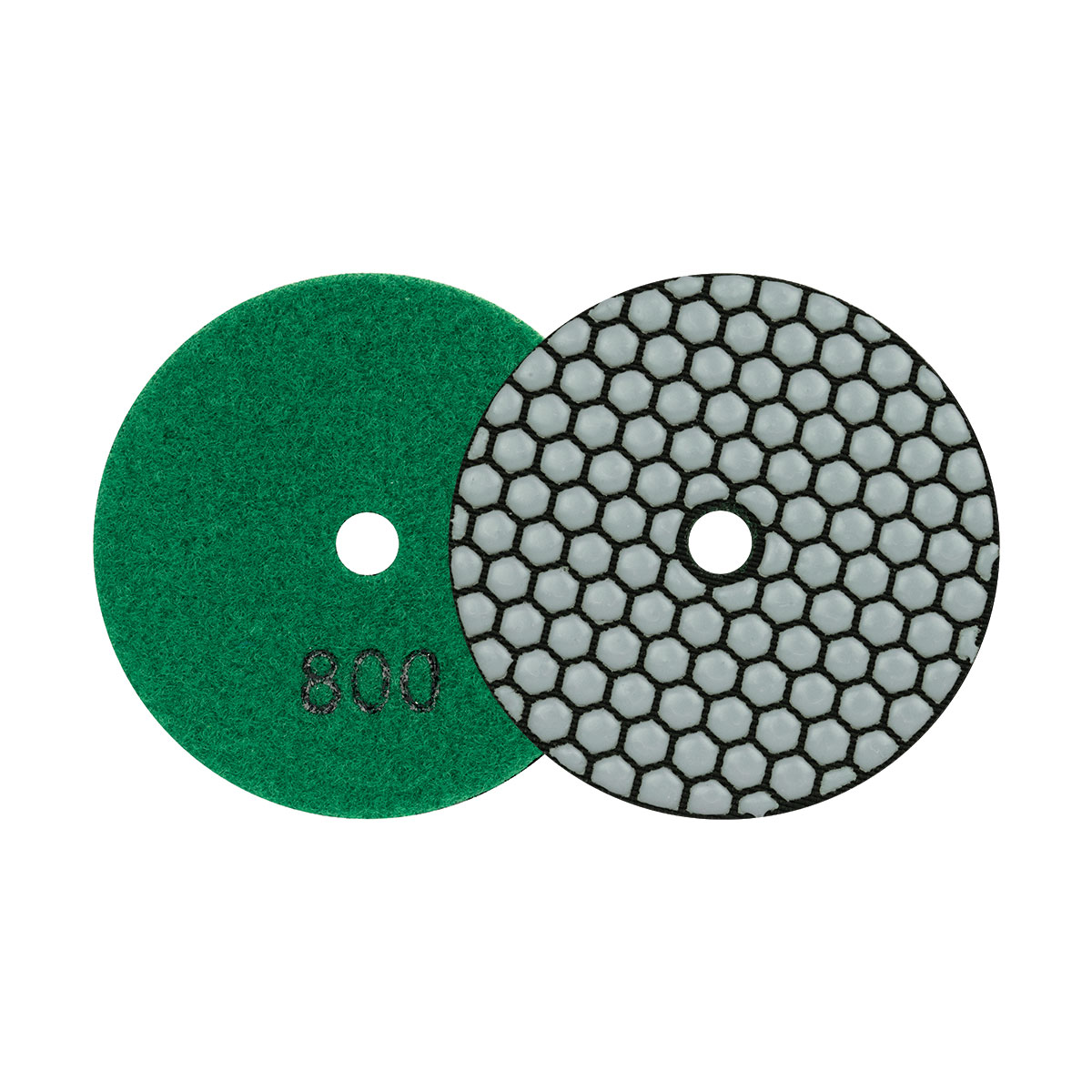The 800 grit diamond polishing pad is designed for dry use applications and provides a fine finish on stone, concrete, and masonry surfaces. The dark green ceramic diamond construction offers excellent durability and consistent performance for professional polishing tasks.