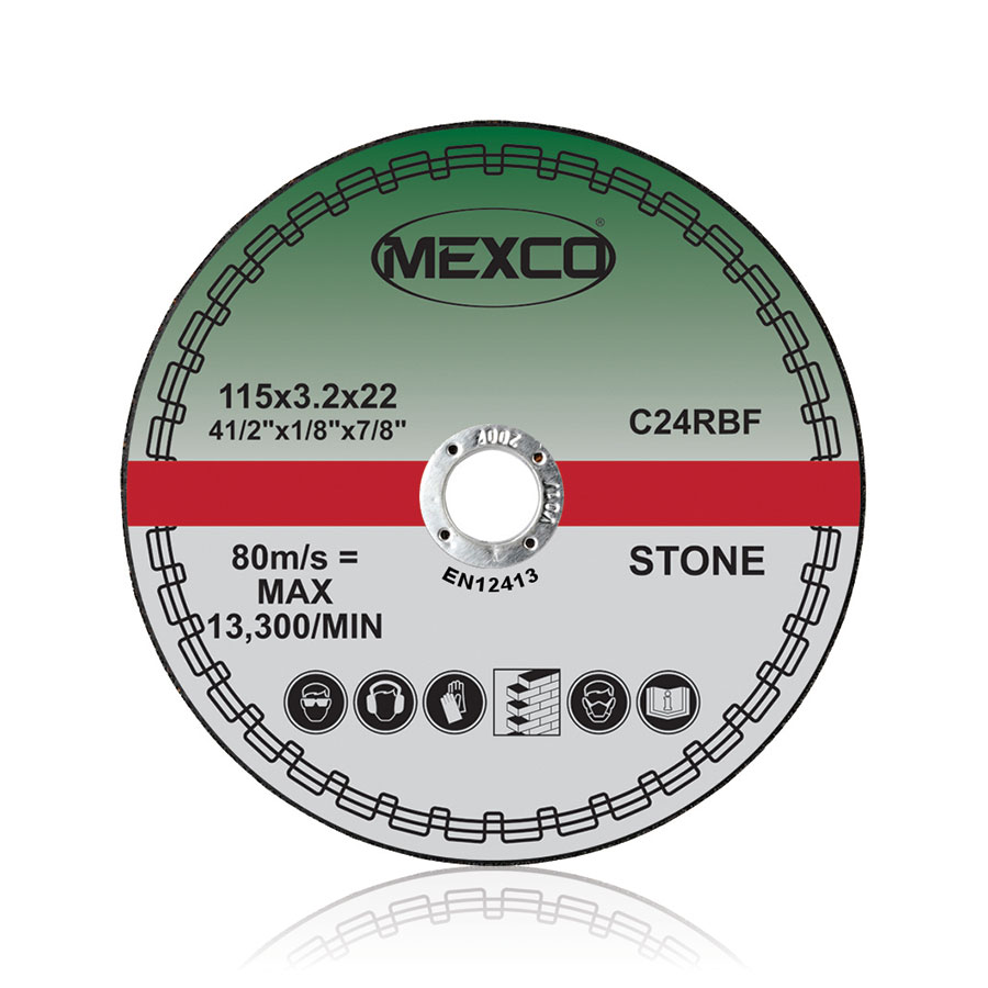 The ABRASIVE WHEEL 115mm FLAT CUTTING – STONE is a professional grade cutting disc specifically designed for stone cutting applications. This 115mm diameter disc features a 3mm thickness for precise cutting and is EN12413 certified for quality and safety compliance. With a maximum operating speed of 13,300 RPM and 80m/s peripheral speed, it delivers reliable performance for demanding stone cutting tasks.