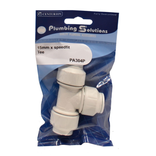 The Plumbing Solutions Speedfit 15mm Tee is a versatile push-fit plumbing connector designed for both plastic and copper pipes. This equal tee fitting features a simple push-and-twist locking mechanism for secure connections. Suitable for both hot and cold water applications as well as central heating systems, this fitting comes with BSI and WRAS approval ensuring reliability and compliance with UK plumbing standards.