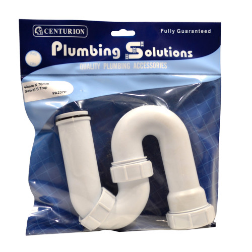The Plumbing Solutions 40mm S Type Swivel Trap is a versatile plumbing fitting designed for waste water drainage. This swivel trap features a 40mm diameter connection and a 76mm water seal, making it ideal for sinks and basins. The adjustable swivel design allows for flexible installation to accommodate various plumbing configurations.