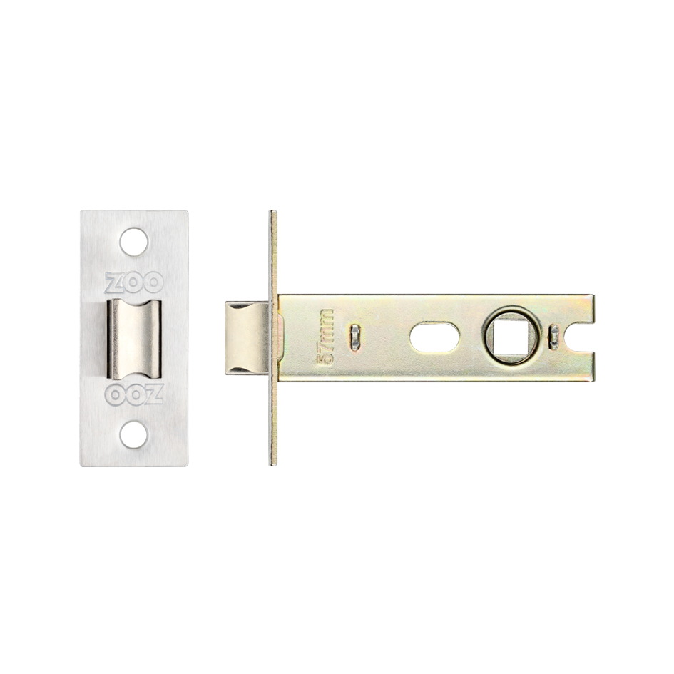 The PR0 RANGE Project Tubular Latch 76mm features a bolt-through design for enhanced security and stability. This professional-grade latch includes a guided latch bolt mechanism for smooth operation and an adjustable strike plate for precise fitting. The satin stainless finish provides a contemporary brushed appearance that resists fingerprints and complements modern door furniture. Ideal for internal doors where a reliable latching mechanism is required without locking functionality.