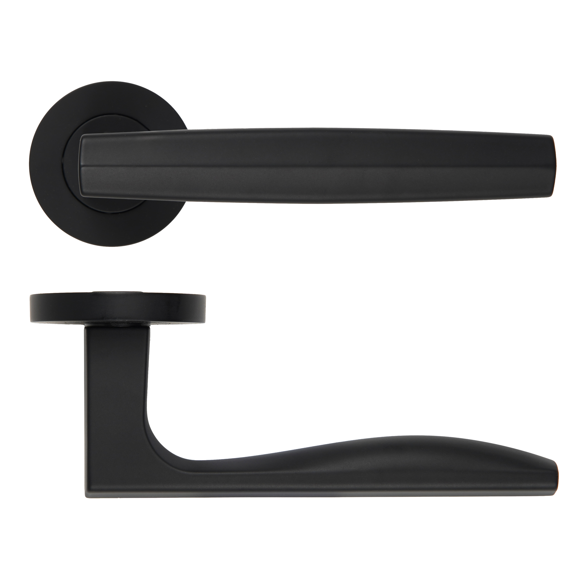 The ROSSO MANIGLIE Appenine Lever On Round Rose 50mm x 8mm in Oscuro Matt Black includes a contemporary lever handle mounted on a 50mm diameter round rose with 8mm depth. This premium door handle features full zinc construction for durability and longevity, with a sophisticated matt black finish that adds a modern aesthetic to any interior door. The kit includes a 4-point fixing inner rose with screw-on cover for secure installation, along with both wood screws and bolt through fixings to suit doors from 35mm to 54mm thickness without requiring break-off screws. The improved allen key design ensures easier installation, while the grub screw on the lever underside provides secure attachment. Environmentally conscious packaging comes without plastic materials, making this an excellent choice for quality-focused projects seeking both style and substance.