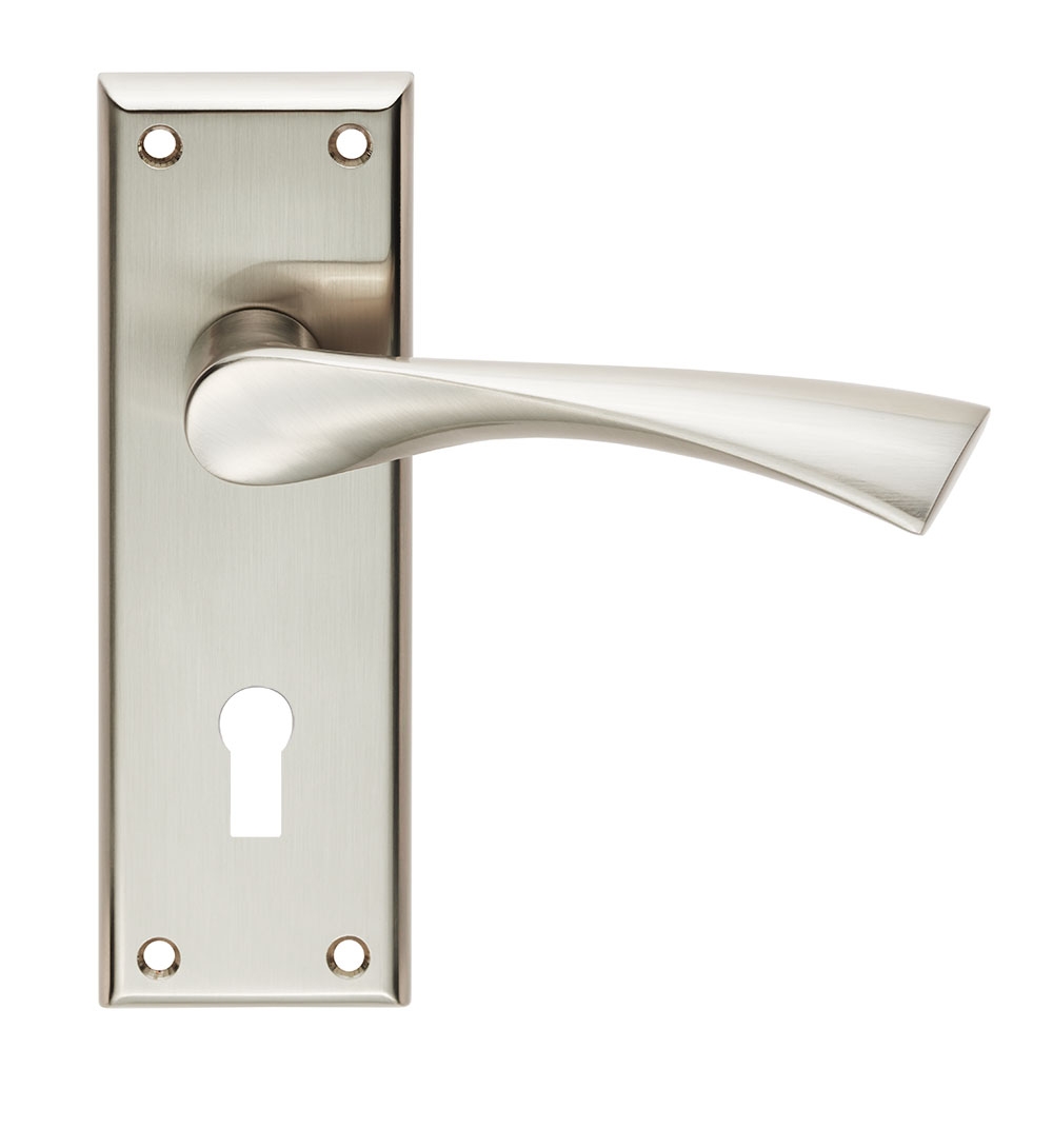The SEROZZETTA® venti lever on face-fix backplate with a chamfered edge rectangular lock backplate, standard profile 57mm c/c, is a stunning and eye-catching design. The lever features an angular downward twist, making it ergonomic in use while being extremely stylish. As part of the Serozzetta Residential range, it comes with a 10-year mechanical guarantee, assuring durability and performance.