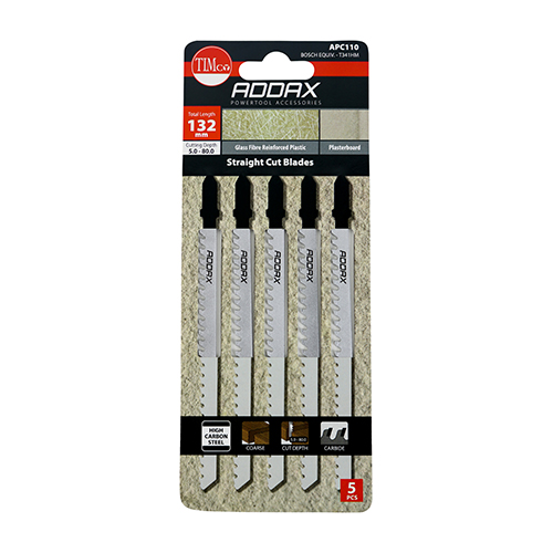 The TIMCO Jigsaw Blades Plasterboard & Cement Board Cutting HCS Blades – T341HM provide a straight coarse cut specifically designed for glass fibre, plasterboard and cement board applications. These high carbon steel (HCS) blades combine the flexibility of an HCS body with a Tungsten Carbide Tip (TCT) cutting edge, resulting in tough blades that maintain their sharp edge and deliver reliable performance at lower temperatures.