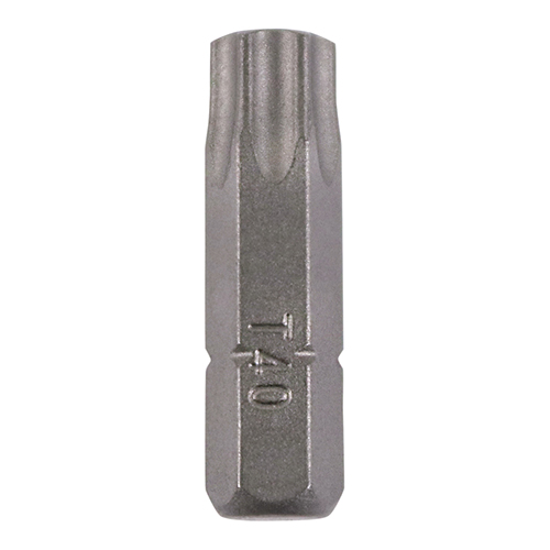 The TIMCO TX Drive Driver Bit S2 Grey – TX40 x 25 is a premium quality driver bit made from S2 hardened carbon steel for exceptional strength and durability compared with standard chrome vanadium driver bits. This TX40 size bit with 25mm length is ideal for professional and demanding applications where longer tool life is essential.