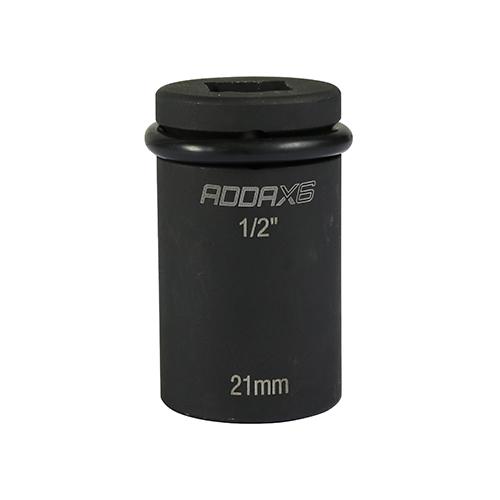 The TIMCO X6 Impact Socket 21mm x 52mm is a shorter and lighter 2 inch impact socket specifically designed for scaffolding installation work. This hardened carbon steel socket features a black phosphate finish for durability and includes a retaining pin and ring system to ensure secure retention to power tools, making it ideal for safe use when working at heights. Compatible with impact drivers featuring 1/2 inch square drive connections.