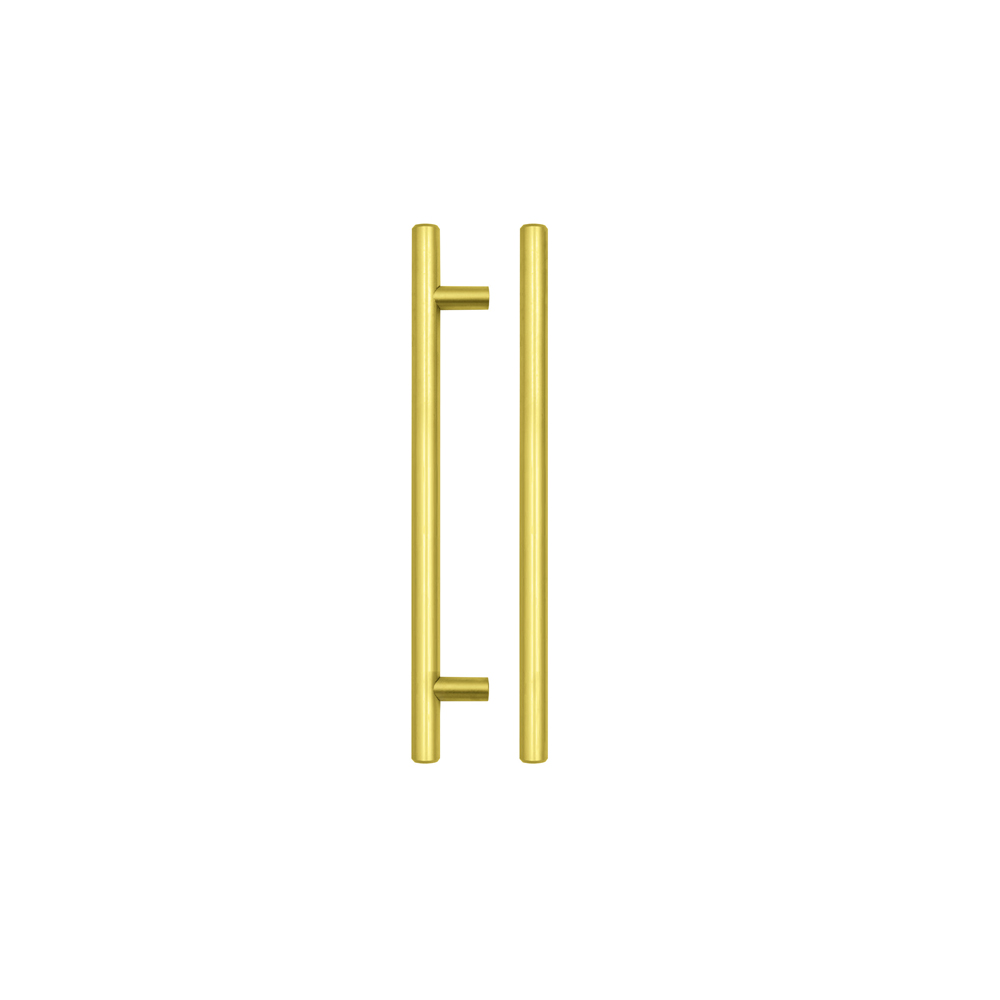 The TOP DRAWER FITTINGS T Bar Cabinet handle features a contemporary minimalist design with a brushed gold finish. This 12mm diameter handle offers a 160mm centre-to-centre fixing distance with a 220mm total length, making it ideal for modern kitchen cabinets, wardrobes, and furniture. The sleek cylindrical design provides comfortable grip while adding an elegant metallic accent to any cabinetry project.