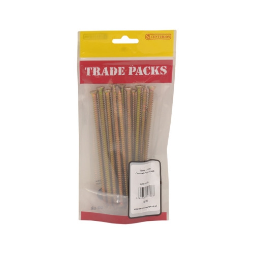 The TRADEPACK Concrete Frame Screws are professional-grade fasteners featuring a Torx compatible head for superior torque control. These zinc yellow passivated screws are specifically designed for masonry applications, offering virtually stress-free installation even in close-to-edge scenarios. Perfect for securing battens, window frames, and door frames to concrete and brickwork substrates. Each pack contains 14 heavy-duty 7.5mm x 152mm screws.