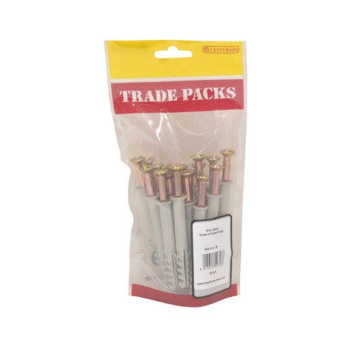 The TRADEPACK Screw In Frame Fixings are professional-grade fasteners designed for secure mounting of battens, window frames, and door frames. These zinc-plated M10 x 80mm fixings feature innovative anti-rotation barbs that prevent the plug from rotating in the hole, ensuring a stable installation. Suitable for most masonry substrates including concrete and brickwork, these fixings provide full-length screw support for maximum holding power.