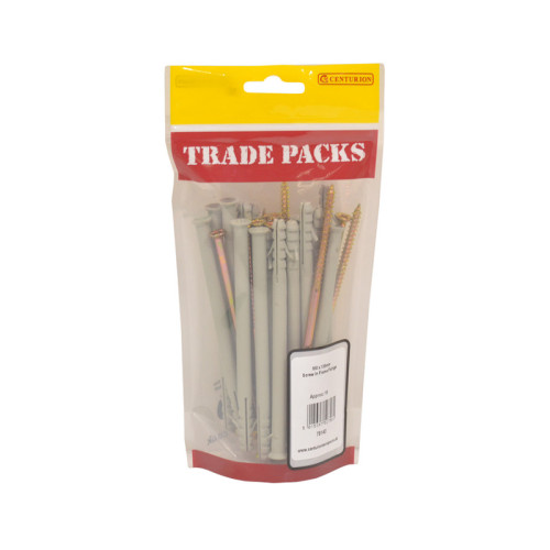 The TRADEPACK Screw In Frame Fixings pack includes 15 zinc-plated M8 x 140mm frame fixings designed for secure installation of battens, window frames, and door frames. These professional-grade fixings feature anti-rotation barbs to prevent plug rotation in the hole, ensuring stable and reliable installations. Suitable for most masonry substrates including concrete and brickwork, these versatile fixings provide full-length screw support for optimal holding power.