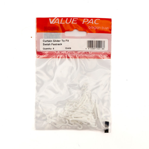 The Value Pack Curtain Gliders are designed specifically to fit Swish Fastrack curtain systems. This pack of 8 white plastic gliders provides an economical solution for smooth curtain operation. Part of the Value Pac range of home essentials, these gliders offer reliable functionality for your window dressing needs.
