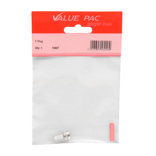 The VALUE PACK F Plug is a cost-effective coaxial connector designed for home TV and audio/video connections. This essential component allows for secure connection of coaxial cables, ensuring reliable signal transmission for your entertainment setup. Part of the Value Pac range of over 500 affordable home essentials.