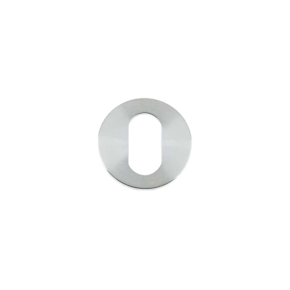 The VIER DOOR HARDWARE Oval Profile Escutcheon in Satin Stainless provides an elegant oval-shaped keyhole cover for euro profile cylinders. Manufactured from premium grade 304 stainless steel with a contemporary satin finish, this 52mm x 4mm unsprung push-on rose offers durability and corrosion resistance. The simple push-on design allows for easy installation without the need for additional fixings, making it ideal for both residential and commercial door applications where a sleek, modern aesthetic is desired.