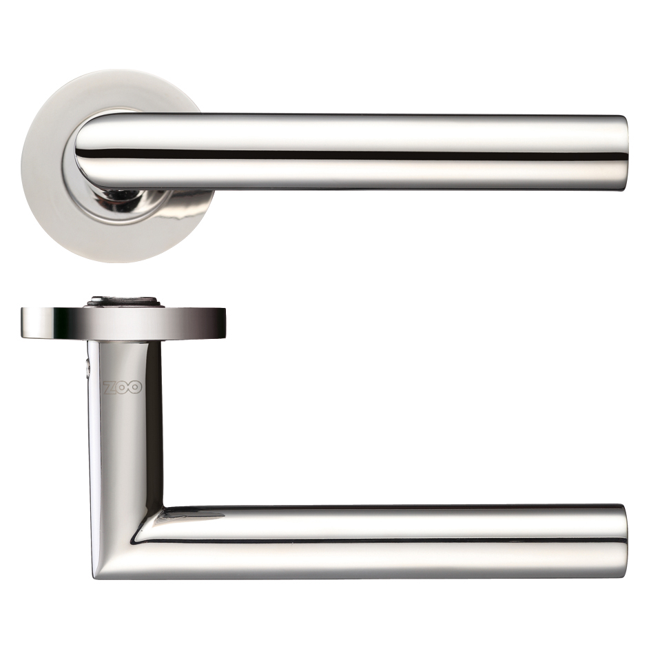 The ZOO DOOR HARDWARE 19mm Mitred Lever on Round Rose features a contemporary tubular design crafted from premium Grade 304 stainless steel with a polished finish. This high-performance lever handle has been rigorously tested to BS EN 1906:2010 Grade 3 standards, achieving an impressive 200,000 cycle durability rating and fire testing certification to BS EN 1634-1 for both 30 and 60 minute timber doors. The kit includes a 52mm diameter x 8mm deep round sprung rose, Heso spindle, and bolt through fixings for secure installation on doors between 35-54mm thick. The elegant mitred lever design combines modern aesthetics with exceptional build quality and reliability.