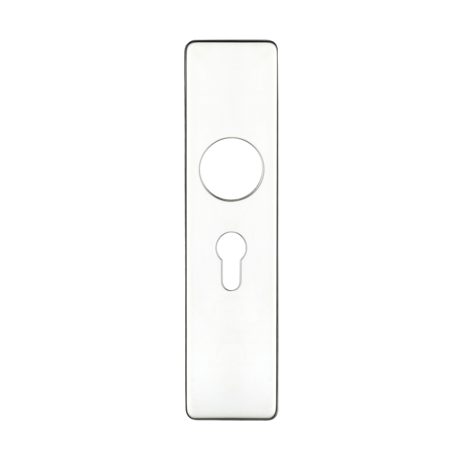 The ZOO DOOR HARDWARE Cover plate for 19mm RTD Lever on Short Backplate provides a sleek polished stainless steel finish for door lever installations. Measuring 180mm x 45mm with a euro profile 47.5mm cutout, this cover plate is specifically designed to suit ZCSIP19SP lever systems. Manufactured from high-quality SS Grade 304 stainless steel, it offers excellent durability and corrosion resistance. The plate is certified to BS EN 1634-1 standards, ensuring reliable performance in demanding applications. Its polished stainless finish delivers a modern, professional appearance that complements contemporary door hardware while providing long-lasting aesthetic appeal.