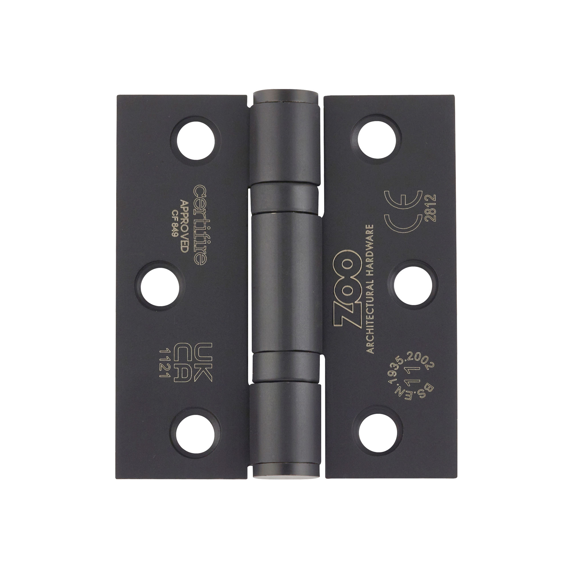 The ZOO HINGES Grade 11 Bearing Hinges – 76mm x 67mm x 2.5mm Square Corner – Matt Black is a premium quality architectural hinge manufactured from Grade 201 stainless steel with a sophisticated matt black finish. This hinge has been rigorously CE Grade 11 tested to BS EN 1935 standards, ensuring exceptional durability and performance for demanding applications. Fire tested and certified suitable for both FD30 and FD60 minute timber fire doors, this hinge combines safety compliance with elegant aesthetics. The precision ball bearing mechanism ensures smooth, quiet operation and extended service life, making it ideal for high-traffic commercial and residential installations where reliability and appearance are paramount.