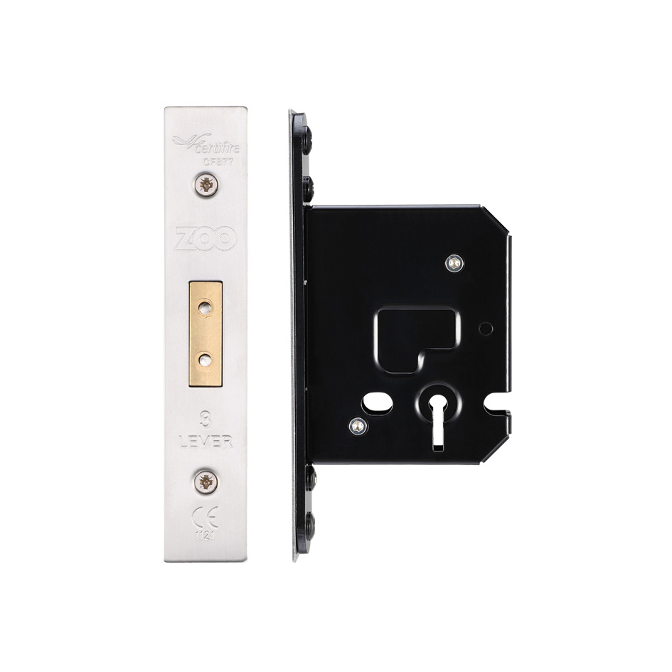 The ZOO LOCKS & LATCHES 3 Lever Dead Lock offers reliable security with BS EN 12209:2003 Grade 2 certification, making it ideal for internal doors requiring keyed locking. This 64mm case depth lock features a solid brass deadbolt for durability and smooth operation, complemented by a sintered steel follower for enhanced strength. Finished in attractive satin stainless steel with matching forend and strike plate, the lock includes a practical plastic back box for easy installation. Supplied with 2 brass keys and available keyed alike for convenience across multiple doors, this lock combines quality construction with professional performance.