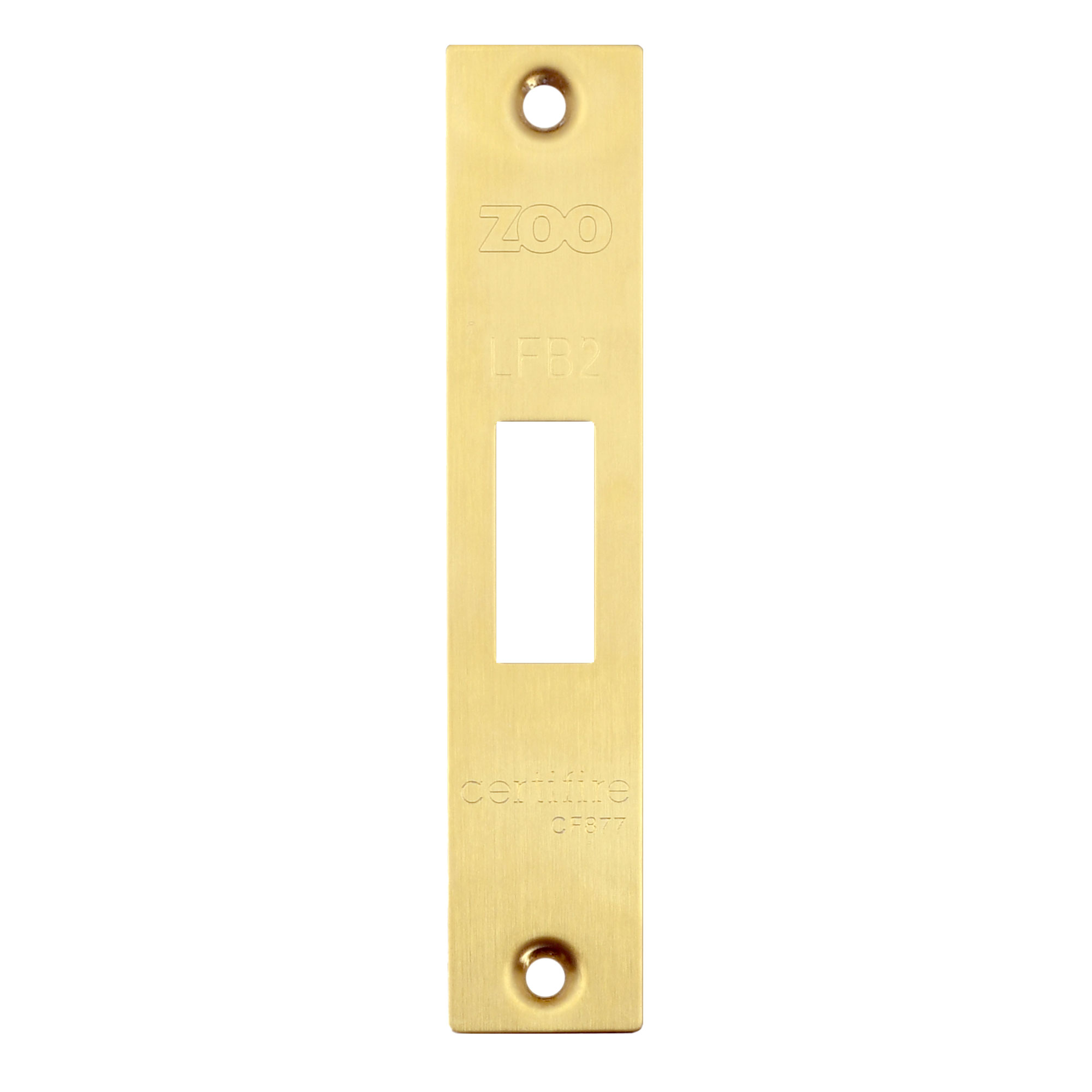 The ZOO LOCKS & LATCHES Square Forend, Strike and Escutcheon Pack is a high-quality accessory designed to suit the ZFB02 Fire Brigade Lock. Finished in durable PVD Satin Brass, this component provides a professional, long-lasting appearance whilst offering the corrosion resistance and wear characteristics associated with PVD coating technology. The square forend measures 118 x 23mm and features the Certifire certification marking, ensuring compliance with fire safety standards. This essential component is ideal for fire-rated door installations where both functionality and aesthetic quality are paramount.