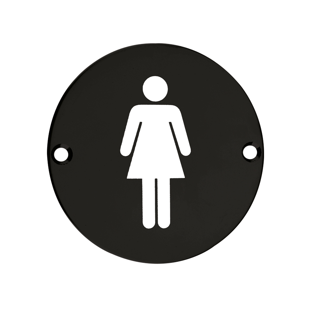 The ZOO SIGNAGE Sex Symbol Female 76mm Diameter sign provides clear, professional facilities identification with a contemporary design. This face-fix circular plate features a white female symbol against a powder coated matt black background, manufactured from durable stainless steel. Compliant with BS EN 1634-1 standards, this 76mm diameter sign offers long-lasting performance and easy installation, making it ideal for washroom identification in commercial, public, and hospitality environments.